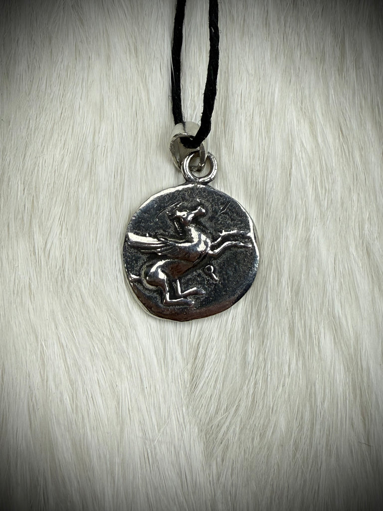 2-sided pendant. Includes black cord.